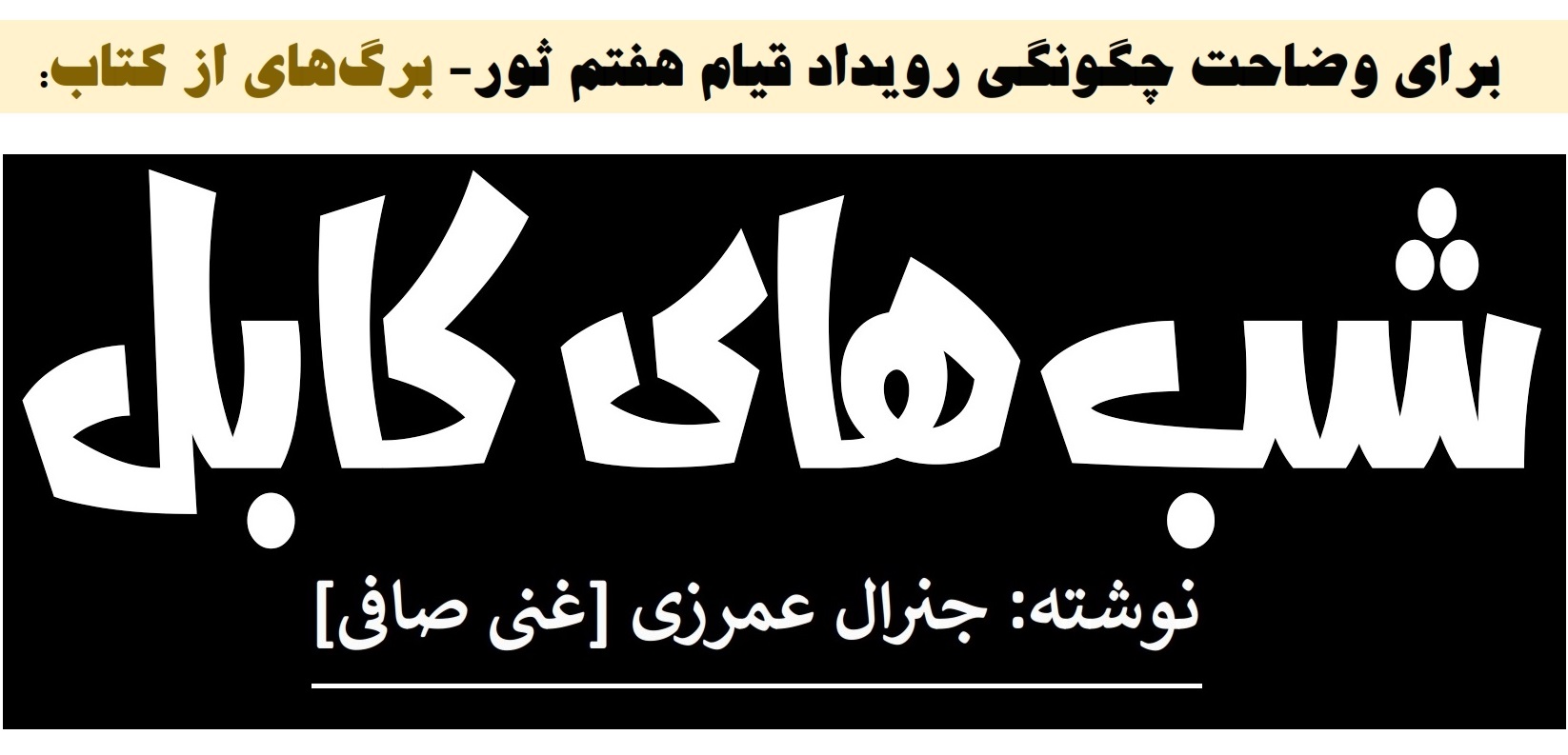 عارف « عرفان » ببرک کارمل وآن شب ظلمانی :دریک چشم اندازعینی وواقعی ،دررثای ،صفات عالی وگهربار فقید ببرک کارمل که ازممیزات بی بدیل ،جسورانه وایثارگرانه او ،مایه می جست ،وباعواطف واحساسات ویژۀ او دربروزکنش ها وواکنش های پرمخاطره ،بازتاب می یابید،میتوان سخن راند. البته خصایلی نابی که با او زایش یافته بود،ودرشگرد های اطلاعت بیشتر دربارهببرک کارمل وآن شب ظلمانی :[…]