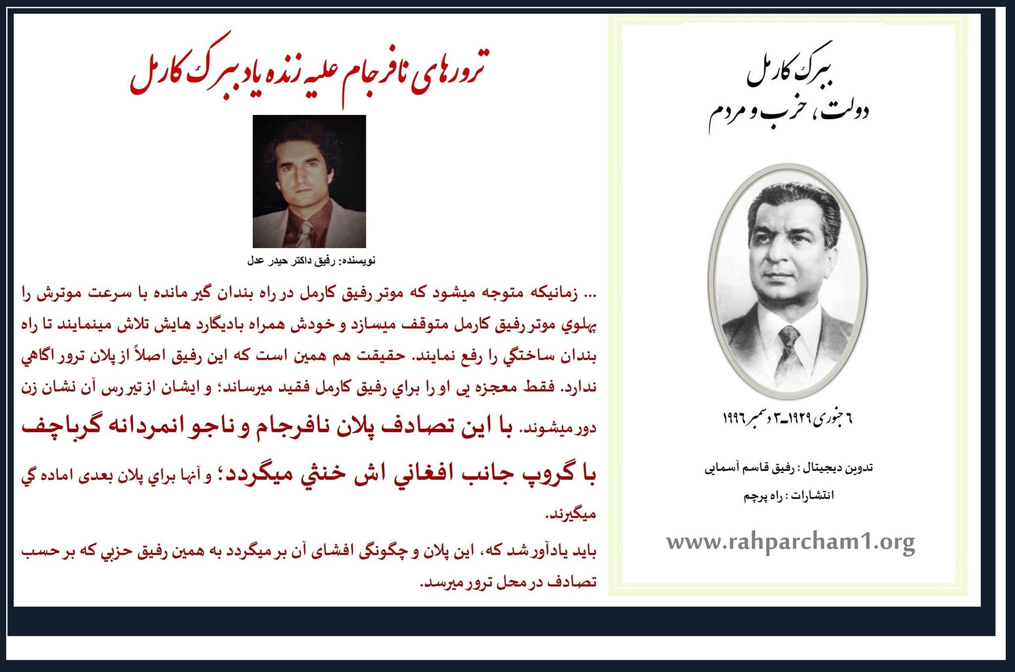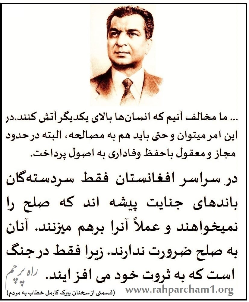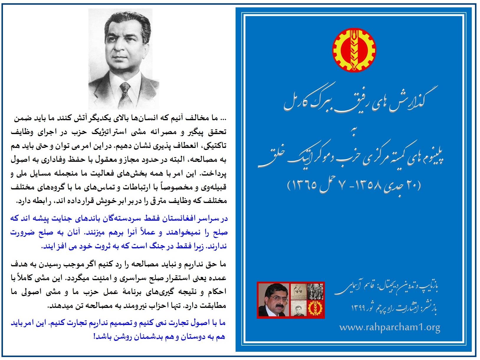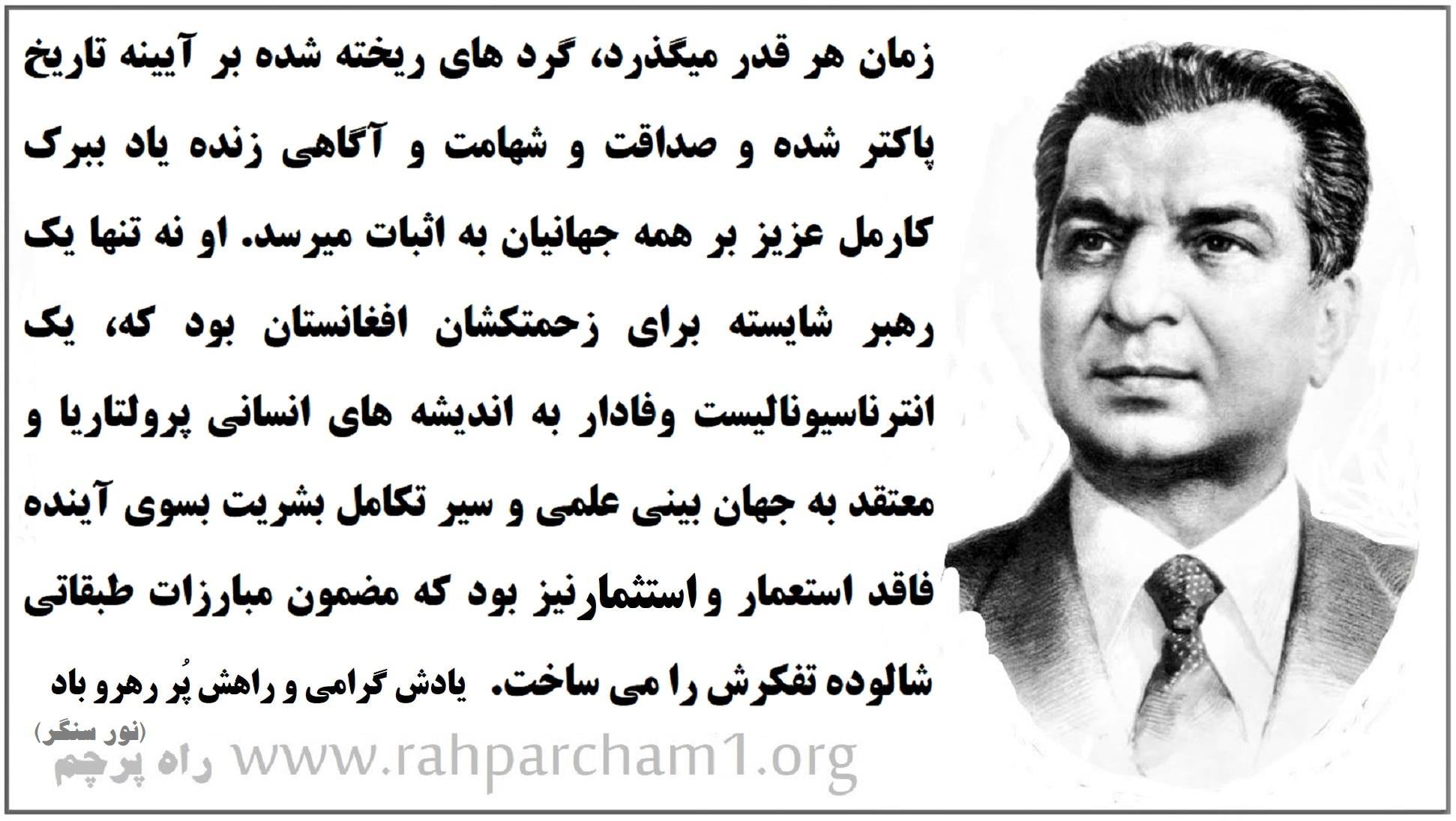 باز هم روح رفیق ببرک کارمل بزرگ شاد که ما فقدان و نبود چنین رهبر را واقعأ احساس مینمایم: ( با تاید پیشنهادات رفقفا ).
