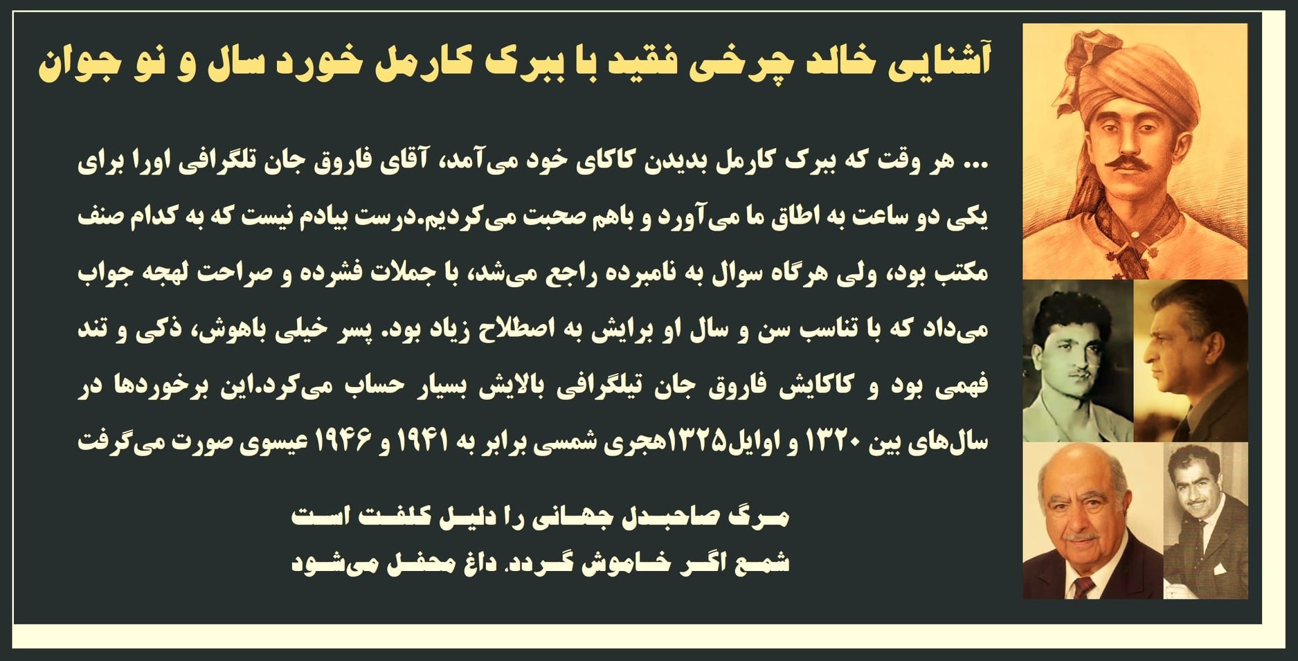 اما در اوضاع و شرایط کنونی ما به یک رهبر شجاع, آگاه, ثابت قدم, از خود گذر, خون سرد, سالم اندیش و بلاخره به یک رهبر فرزانه صادق و پرهیزگار مانند رفیق کارمل نیاز داریم که در قدم نخست رهبری ما و بعد رهبری تمام نیروهای مترقی و ملی را به عهده گیرد, سوق, اداره و رهبری سالم نماید و به دین ترتیب به آرمانها و آرزوی میلیونها انسان به غم نشسته پاسخ گوید و رویا ها را به حقیقت مبدل سازد.