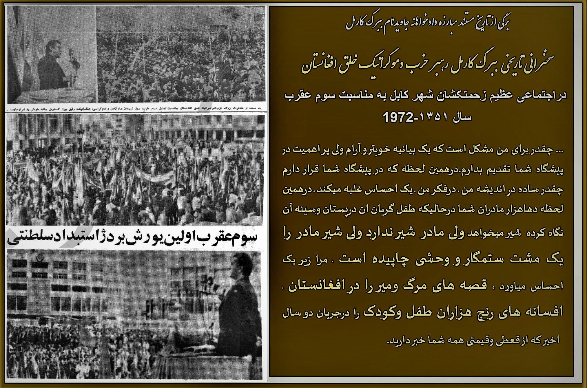 از صحبت رفیق ببرک کارمل حین ابرازنظر در باره خط مشی حکومت موظف در سال ۱۳۵۰