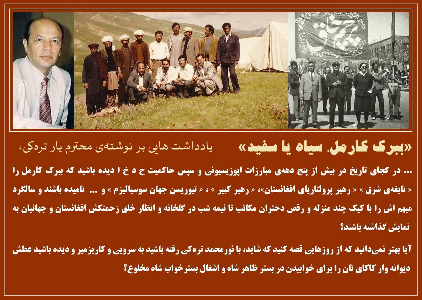 ( رفیق سيد احسان واعظی ) نقش سازنده و ماندگار ببرک کارمل در مسير تاريخ و سمتدهی مبارزات ترقيخواهانه ی مردم افغانستان