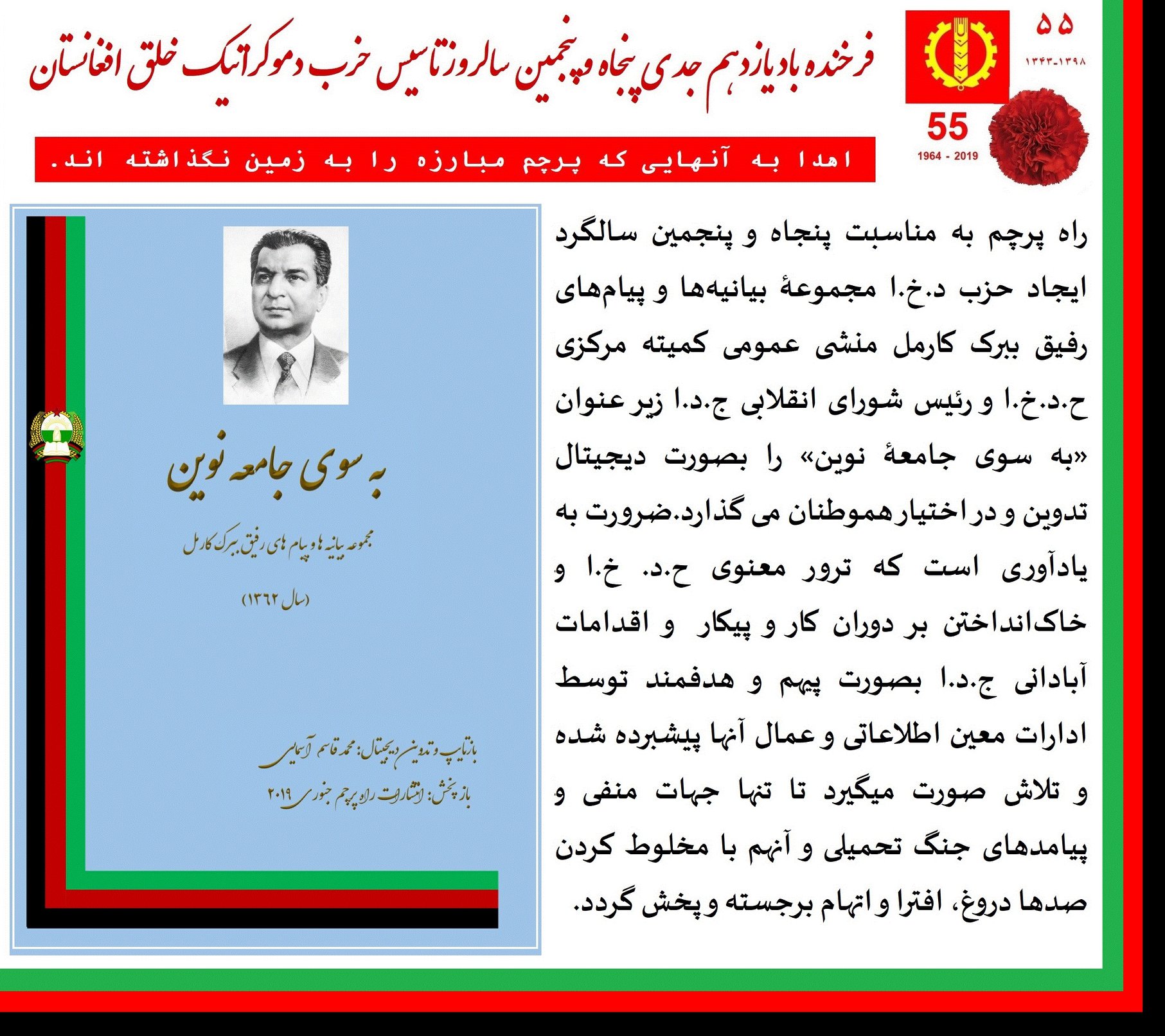نوشته،دیدگاه،پیام، یادواره و… از آرشیف نشرات برگ فیسبوکی اهدا شده به زنده یاد ببرک کارمل Babrak Karmal is a great legacy from the contemporary history of our country.