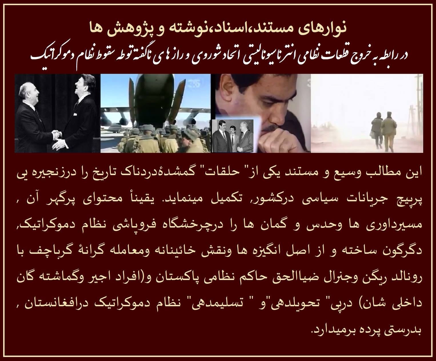 دولت جمهوری دموکراتیک افغانستان درگذرگاه تاریخ مستنداهدا به آنهایکه خواستار تحقیق وتتبع مستقل و بیطرفانه در بارۀ تاریخ کشور اند.