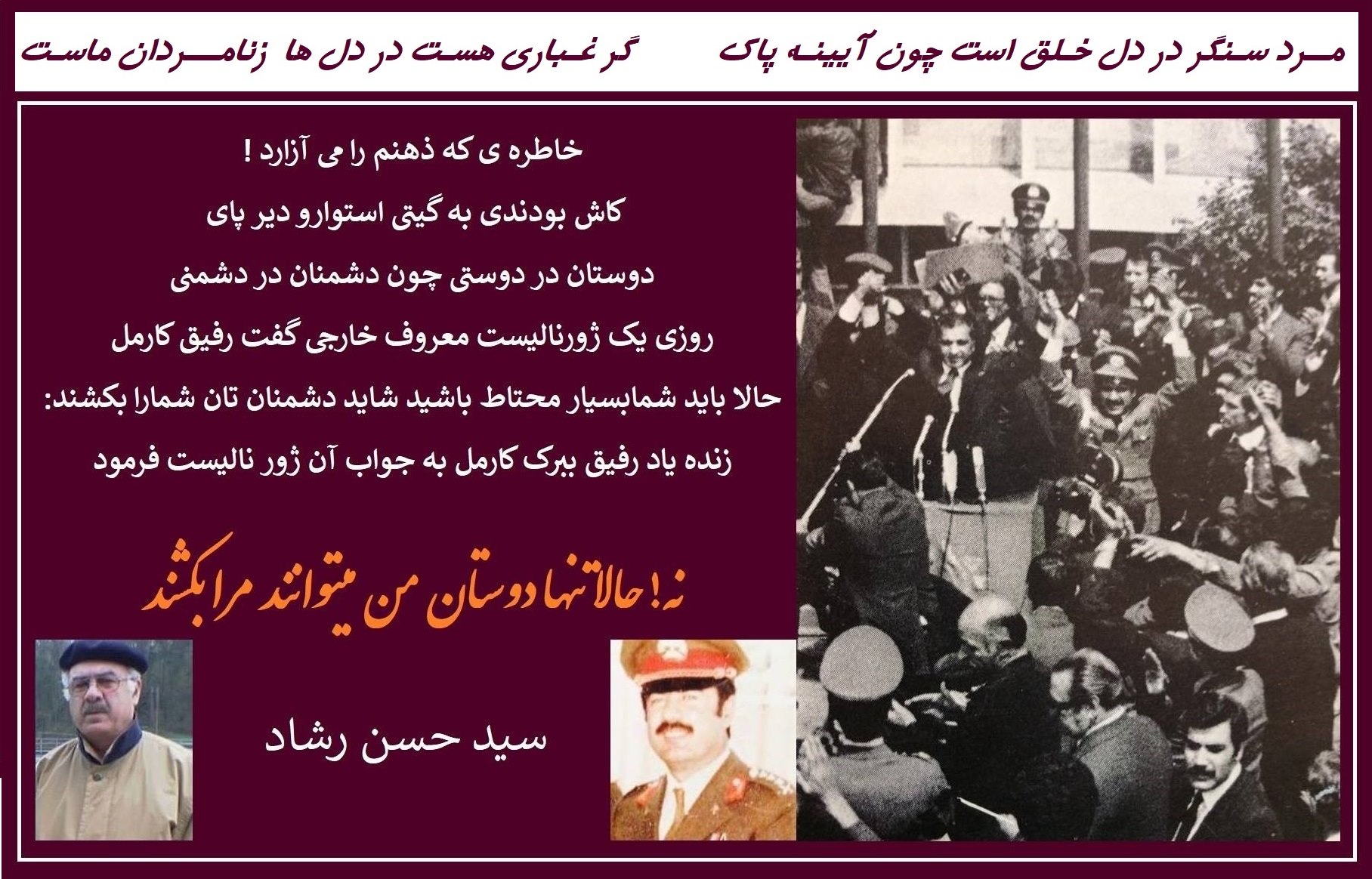 ای مختصر را به پیشواز تحولات ماه جدی با انتخاب یک آهنگ دلنشین داریوش اهدا به تمام رفقا به پایان میرسانم.