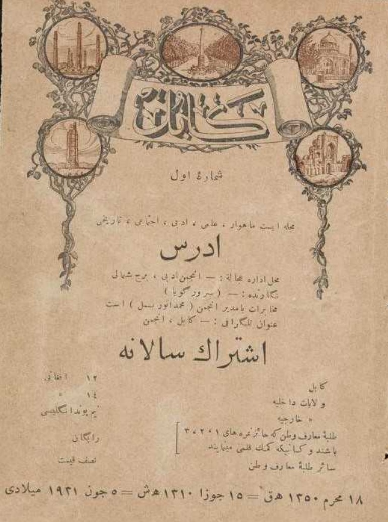 مجله کابل – مجموعه سال اول 1931( 1310) ناشر انجمن ادبی کابل تهیه و ترتیب: رفیق قاسم آسمایی Kabul Magazine – First Year Collection 1931 (1310) Publisher: Kabul Literary Association