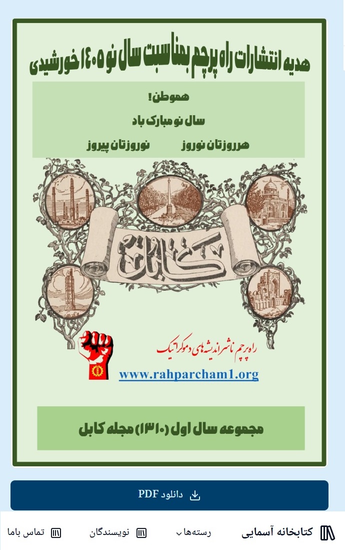 با درنظرداشت اینکه مجله کابل به عنوان یکی از غنی‌ترین آرشیف؜های فرهنگی، و منبعی بی‌بدیل برای پژوهشگری در عرصه ادبیات و تاریخ کشور است؛ انتشارات راه پرچم مبادرت به پخش دیجیتال آن نموده و مصمم است تا به تدریج شماره؜های گردآوری شده «مجله کابل» را همگانی سازد و در اولین قدم مجموعه سال اول آنرا بمناسبت سال نو خورشیدی پیشکش هم؜وطنانی  که قصد مطالعه تاریخ فکری قرن اخیر افغانستان را دارد، می؜نماید.